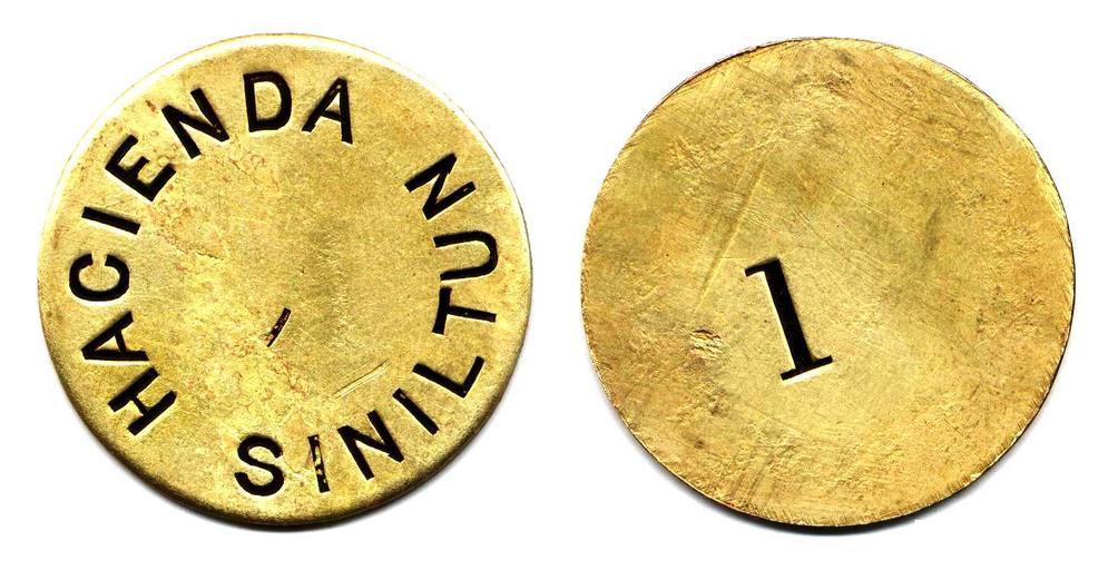 Ficha por 1 real de la Hacienda Siniltún, Yucatán (anverso y reverso).jpg (1456x749)