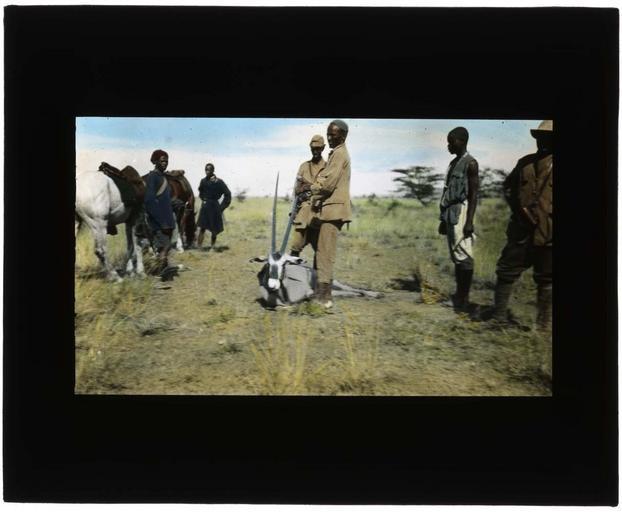 Keywords: gemsbock animal mammal specimen africa men horse equus horns animals mammals saddle cap hat savannah 1909 reesevelt expedition smithsonian american usa smithsonian institution smithsonianinstitution smithsonian institution archives smithsonianinstitutionarchives photo border outdoor Creator: Kermit Roosevelt or Edmund Heller Date: 1909 Local number: SIA2011-1414 Summary: Acc. 06-093 Box 1 Folder 2. From a hand-painted lantern slide documenting the Smithsonian-Roosevelt African Expedition of 1909. Repository: Smithsonian Institution Archives View more collections from the Smithsonian Institution. Creator: Kermit Roosevelt or Edmund Heller Date: 1909 Local number: SIA2011-1414 Summary: Acc. 06-093 Box 1 Folder 2. From a hand-painted lantern slide documenting the Smithsonian-Roosevelt African Expedition of 1909. Repository: Smithsonian Institution Archives View more collections from the Smithsonian Institution. |