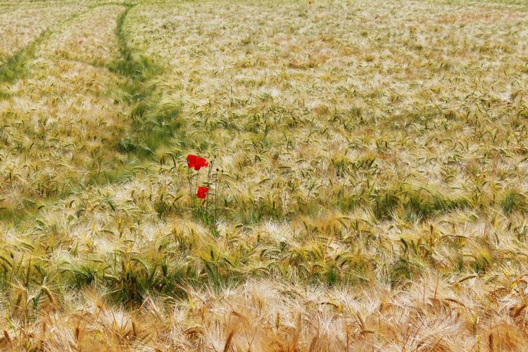 Keywords: field barley field gersten cereals arable cornfield food grain nourishing barley agriculture nature nutrition gold of course summer mood landscape poppy red lonely scenic loneliness