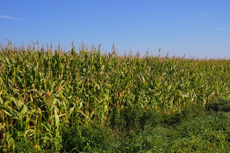 Keywords: field cornfield agriculture cattle feed corn arable landscape food summer rural corn cob sky corn on the cob bio-gas plant nature crop green corn plant air background