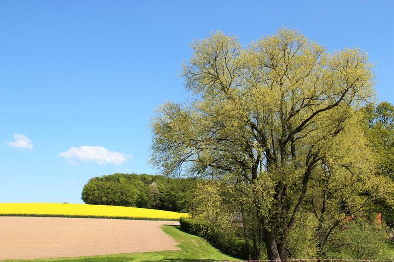 Keywords: field of rapeseeds tree in blossom in bloom yellow spring bright nature plant time of year may agriculture flora field landscape flowering plant cruciferous plant crop agricultural crop raw material for canola oil fields