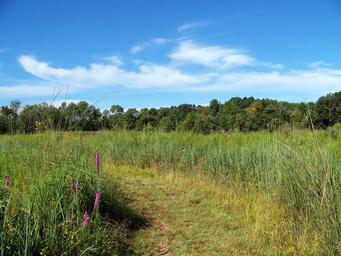 Keywords: field weeds trees summer landscape sky clouds outdoor natural countryside