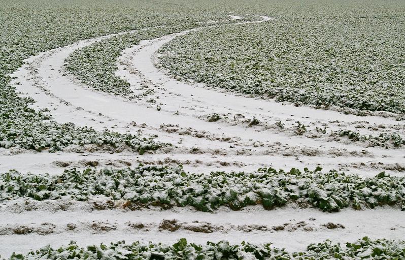 Keywords: field winter snowy tracks in the snow field of rapeseeds snow landscape nature cold wintry arable fields winter mood melancholic mood