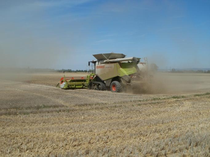 Keywords: fields harvest grain agriculture crop machinery vehicle landscape outdoor season farmland countryside industry