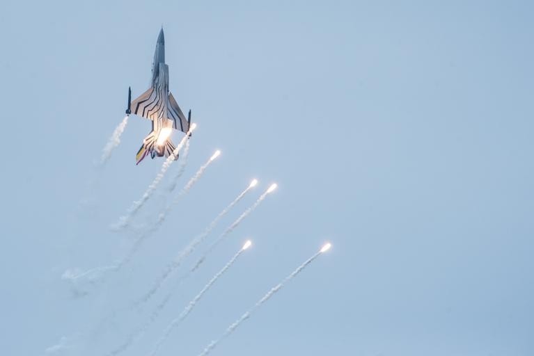 Keywords: fighter aircraft flares show flight rolling military airplane jet sky fighter aircraft smoke war plane speed aeroplane force fly air technology fast airshow armed combat demonstration aerial aerobatic