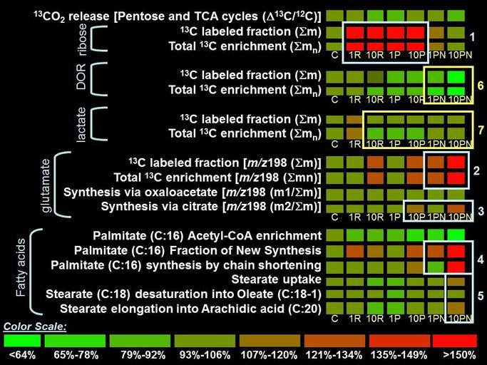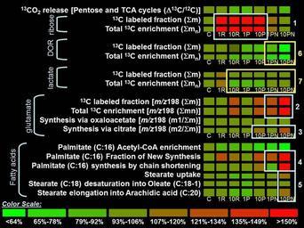 | Keywords: Figures PNU913252(01-20-05).jpg  en Stable 13C isotope-based dynamic metabolic profile array of Rosiglitazone Pioglitazone and PNU-91325 in cultured cells fed with U-13C18stearic acid as the tracer The color of each square corresponds to the rate of 13C carbon flux from stearic acid into products such as RNA-ribose DNA-deoxyribose lactate glutamate of the TCA cycle and fatty acids induced as altered by drug treatment The 13C labeled isotopolome readily reveals associations among stearic acid substrate and multiple products in cultured tumor cells liver © Springer Science+Business Media Inc 200610 1007/s11306-006-0015-5; Open Access http //link springer com/article/10 1007/s11306-006-0015-5/fulltext html 2013-02-03 12 36 50 http //link springer com/article/10 1007/s11306-006-0015-5/fulltext html George G Harrigan Jerry Colca Sándor Szalma László G Boros cc-zero Uploaded with UploadWizard Uncategorized 2013 February 3  |