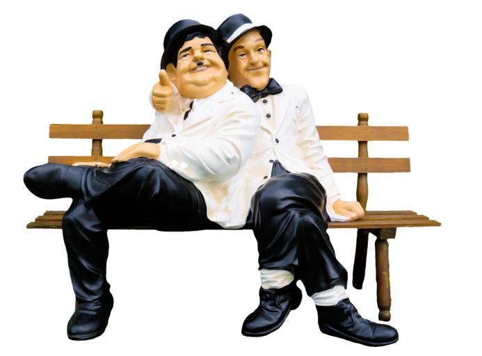 Keywords: figures thick and stupid stan laurel oliver hardy film cinema funny bank bench hat melon