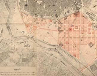 | Keywords: Finca Casa-Puerta, abajo a la derecha, plano de Castro, 1861 (cropped).jpg Ensanche de Madrid anteproyecto Plano general de la zona de Ensanche y del emplazamiento y distribución del nuevo caserio ejecutado por Real orden de 8 de Abril de 1857 Carlos Mª de Castro ; F Perez Baquero grabó eu Madrilgo Castro zabalgunea 1857 http //bdh bne es/bnesearch/detalle/89479 Biblioteca Digital Hispánica Castro Carlos María de<br />Pérez Baquero Francisco fl 1859-1905 <br />Litografía de J Donon Madrid 1861 PD-old-100 Madrilgo Castro zabalgunea 1861 jpg 1857 in Spain Old maps of Madrid Urban studies and planning Cities in Spain in the 19th century Lithographs by Julio Donón Madrid in the 1850s Posesión de Casa-Puerta ImageNote 1 1145 821 96 111 1243 977 2 Posesión de Casa-Puerta ImageNoteEnd 1 |