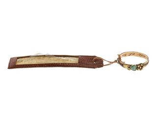 | Keywords: Fingerring av guld med turkos samt intyg, 1700-tal - Hallwylska museet - 110319.tif LSH artwork sv FINGERRING jämte intyg Av guld med turkos och hårmatta Skena jämnbred med platta sidor utsidan med fasetterade kanter mellan dessa en fördjupning vari en brun hårmatta Upptill pålagd på skenan en hjärtformig turkos med konvex översida fattad i millegriffes tusen körnor av guld Vid turkosens spetsiga ända en hand av guld med tummen på ena och fingrarna på andra sidan om spetsen På ringens insida graverad inskrift på franska Livet och döden Utan stämplar Tyskt arbete från 1700-talets slut eller 1800-talets början Intyg Skrivet med bläck och tysk stil på papper av landgrevinnan Marie av Hessen-Philippsthal senare uppklistrat på tyg och omslaget med gelatinpapper Längd 4 5 cm bredd 1 2 cm Gåva till Wilhelmina von Hallwyl julafton 1897 från hennes mor inköpt av denna hos antikvitekshandlare Ed Kahlert Tyskland original caption Fingerring av guld med turkos samt intyg 1700-tal <br/> Nyckelord Intyg Fingerring Ring Hjärta Föremålsbild Hårarbete Turkos Hårmatta 1700-talets slut-1800-talets början gold g 1 2 size cm 2 0 3 HWY Caroline Friedrike Mathilde Hertiginna av Württemberg f prinsessa av Waldeck-Pyrmont Hertiginna 1801-1825 Marie Alexandrine Augustine Louise Eugenie Mathild af Hessen-Philippsthal Lantgrevinna 1818-1888 place of origin DE original filename hm_dig24367 20855 inventory number HWY XXXVI C a 39 110319 CC-BY-SA Helena Bonnevier Finger rings Turquoise certificates Hearts Hair jewellery Jewellery in the Hallwyl museum Helena Bonnevier Media contributed by LSH unmatched material Media contributed by LSH malformated year Media contributed by LSH unmatched keyword Media contributed by LSH 2016-12 |