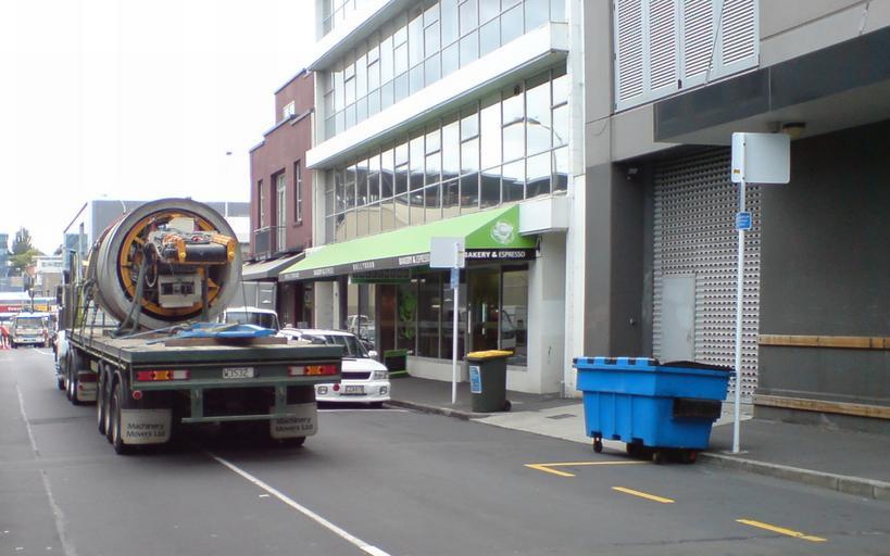 Keywords: Finished Mini TBM Is Leaving Newmarket.jpg A mini TBM tunnel boring machine on the back of a truck in Newmarket in Auckland City New Zealand I think this one may have been the one used for tunelling a new stormwater line from a nearby park Lumsden Green though I may be mistaken self-photographed 2008 Uploader -36 8670856 174 7763121 Photos taken by Ingolfson Tunnel boring machines Trucks in New Zealand Newmarket New Zealand Trash bins in New Zealand Flatbed single height semi-trailer trucks |