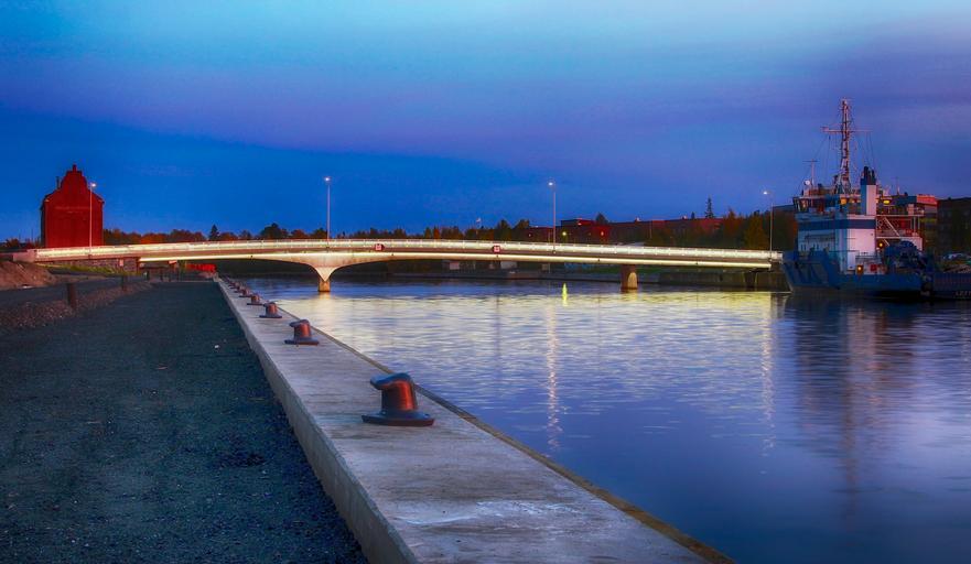 Keywords: finland bridge water ship trees sky clouds sunrise morning hdr river harbor architecture outside panorama