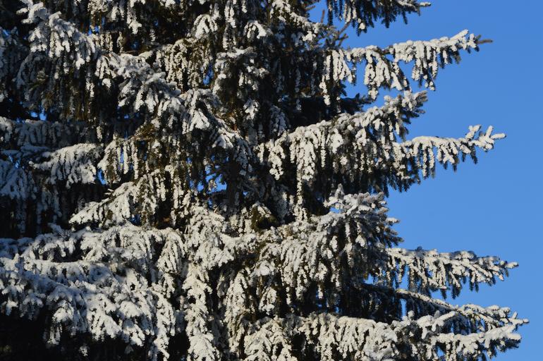 Keywords: fir tree snow winter blue sky cold forest environment woods conifer nature spruce
