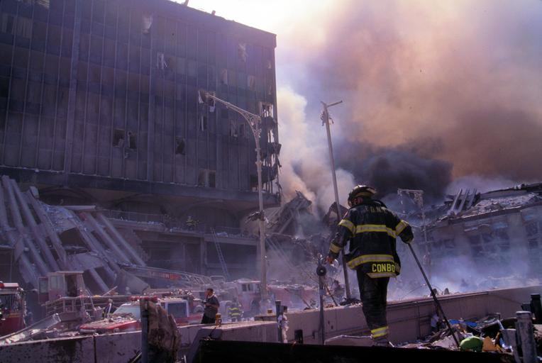 | Keywords: outdoor Fire fighters amid smoking rubble following September 11th terrorist attack on World Trade Center, New York City. Sept. 11, 2001. Image. Retrieved from the Library of Congress, www.loc.gov/pictures/item/2002719363/. (Accessed September 03, 2016.)  Call Number: LC-A05- D29 [item] [P&amp;P]  Forms part of: Collection of unattributed photographs ...  The 250 color slides made at the World Trade Towers in New York City on September 11, 2001, received from the New York District Attorney's office from an unattributed photographer, are in the public domain. Privacy and publicity rights may apply.   These slides were received from the New York District Attorney's office with the photographer relinquishing any and all copyright and right of attribution. Therefore, the photographer's name will not be associated with these photographs.  Note – This image has been digitally adjusted for one or more of the following: - fade correction, - color, contrast, and/or saturation enhancement - selected spot and/or scratch removal - cropped for composition and/or to accentuate subject matter - straighten image Fire fighters amid smoking rubble following September 11th terrorist attack on World Trade Center, New York City. Sept. 11, 2001. Image. Retrieved from the Library of Congress, www.loc.gov/pictures/item/2002719363/. (Accessed September 03, 2016.)  Call Number: LC-A05- D29 [item] [P&P]  Forms part of: Collection of unattributed photographs ...  The 250 color slides made at the World Trade Towers in New York City on September 11, 2001, received from the New York District Attorney's office from an unattributed photographer, are in the public domain. Privacy and publicity rights may apply.   These slides were received from the New York District Attorney's office with the photographer relinquishing any and all copyright and right of attribution. Therefore, the photographer's name will not be associated with these photographs.  Note – This image has been digitally adjusted for one or more of the following: - fade correction, - color, contrast, and/or saturation enhancement - selected spot and/or scratch removal - cropped for composition and/or to accentuate subject matter - straighten image  <em>Fire fighters amid smoking rubble following September 11th terrorist attack on World Trade Center, New York City</em>. Sept. 11, 2001. Image. Retrieved from the Library of Congress, <a href="http://www.loc.gov/pictures/item/2002719363/" rel="nofollow">www.loc.gov/pictures/item/2002719363/</a>. (Accessed September 03, 2016.)