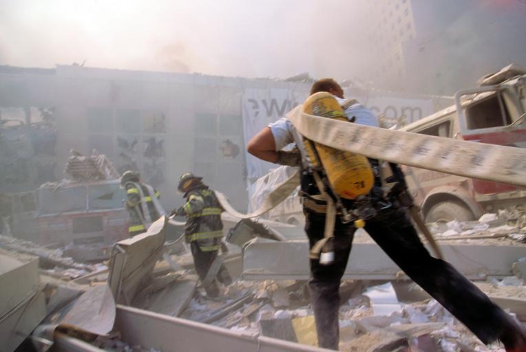 | Keywords: Fire fighters carrying water hose through rubble September 11th following terrorist attack on World Trade Center, New York City. Sept. 11, 2001. Image. Retrieved from the Library of Congress, www.loc.gov/pictures/item/2002719360/. (Accessed September 03, 2016.)  Call Number: LC-A05- C27 [item] [P&amp;P]  Forms part of: Collection of unattributed photographs ...  The 250 color slides made at the World Trade Towers in New York City on September 11, 2001, received from the New York District Attorney's office from an unattributed photographer, are in the public domain. Privacy and publicity rights may apply.   These slides were received from the New York District Attorney's office with the photographer relinquishing any and all copyright and right of attribution. Therefore, the photographer's name will not be associated with these photographs.   Note – This image has been digitally adjusted for one or more of the following: - fade correction, - color, contrast, and/or saturation enhancement - selected spot and/or scratch removal - cropped for composition and/or to accentuate subject matter - straighten image Fire fighters carrying water hose through rubble September 11th following terrorist attack on World Trade Center, New York City. Sept. 11, 2001. Image. Retrieved from the Library of Congress, www.loc.gov/pictures/item/2002719360/. (Accessed September 03, 2016.)  Call Number: LC-A05- C27 [item] [P&P]  Forms part of: Collection of unattributed photographs ...  The 250 color slides made at the World Trade Towers in New York City on September 11, 2001, received from the New York District Attorney's office from an unattributed photographer, are in the public domain. Privacy and publicity rights may apply.   These slides were received from the New York District Attorney's office with the photographer relinquishing any and all copyright and right of attribution. Therefore, the photographer's name will not be associated with these photographs.   Note – This image has been digitally adjusted for one or more of the following: - fade correction, - color, contrast, and/or saturation enhancement - selected spot and/or scratch removal - cropped for composition and/or to accentuate subject matter - straighten image  <em>Fire fighters carrying water hose through rubble September 11th following terrorist attack on World Trade Center, New York City</em>. Sept. 11, 2001. Image. Retrieved from the Library of Congress, <a href="http://www.loc.gov/pictures/item/2002719360/" rel="nofollow">www.loc.gov/pictures/item/2002719360/</a>. (Accessed September 03, 2016.)