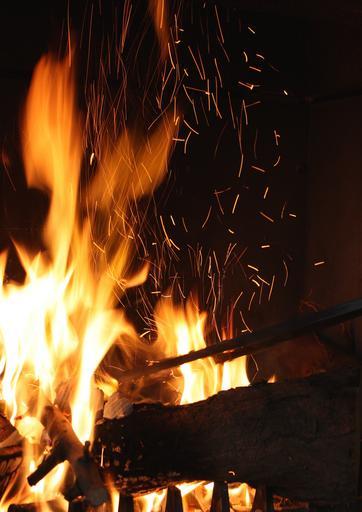 Keywords: fire fireplace heat light sparks poke flames burn atmosphere turn on