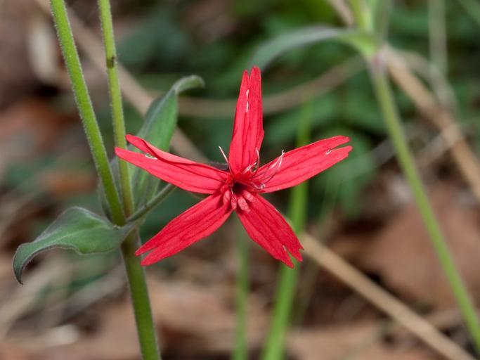 Keywords: Fire flower.jpg en Fire Pink Silene virginica flower at Beaman Park in Nashville Tennessee own Kaldari 2009-04-12 Silene virginica Photos of flowers by Ryan Kaldari