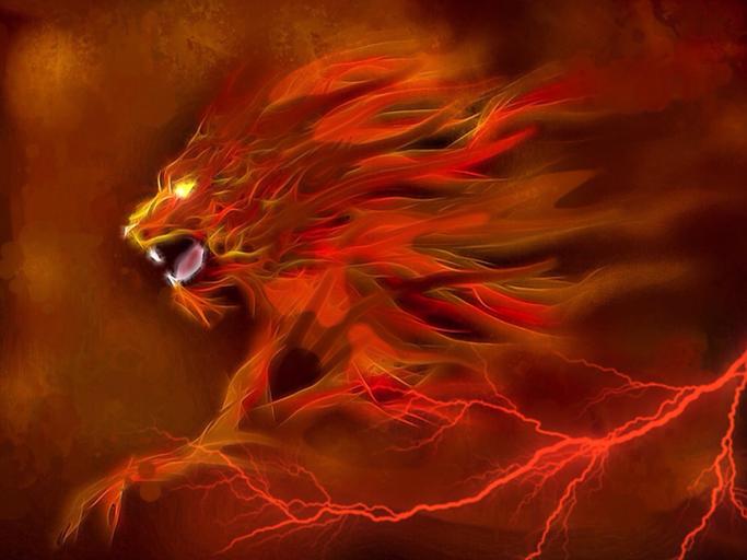 Keywords: fire lion flame light mystical dangerous wild light-essence fantasy orange red flash claw