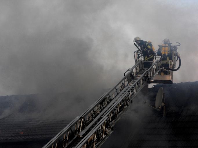 Keywords: fire smoke risk fog roof brand fire fighting flame delete head alarm burn germany men helper dangerous arson fear help