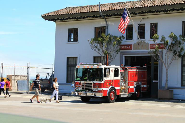Keywords: fire truck firefighters barracks usa united states of america truck
