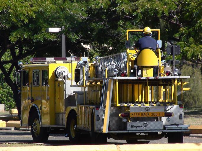 Keywords: fire truck vehicle transportation emergency engine fireman rescue 911 ladder hero equipment firefighter department firetruck yellow
