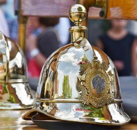 Keywords: fireman fire fire protection brand headwear helm historically old polished head protection protection mirroring metal