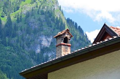 Keywords: fireplace chimney roof bricked stones brick mountains alpine view mountainside