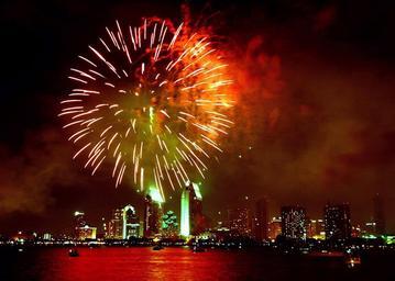 Keywords: fireworks skyline san diego silhouette celebration patriotism harbor california usa independence holiday america evening fourth night display performance water reflection