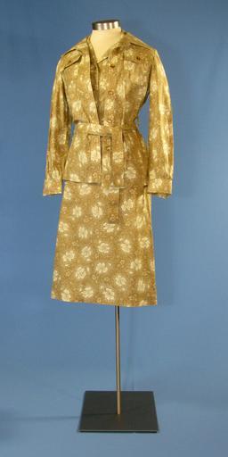 Keywords: First Lady Betty Ford's brown traveling suit.jpg Artwork en A dress and jacket designed by Albert Capraro for First Lady Betty Ford The beige and white floral print set features a button down front with plastic buttons side breast pockets on the jacket side pockets on the dress a matching tie ribbon and waist belt - 1976 1977 Institution Gerald R Ford Presidential Museum object history Worn April 21 1976 “ First Lady Trip to Texas; June 2 1976 “ Arrival Ceremony for King Juan Carlos and Queen Sophia of Spain; October 11 1976 “ Depart Waldorf Astoria photograph with George Shearing and Great PGA Wives; February 2-3 1977 “ Deware House / Beauty Shop; May 24 1977 “ Dr Fitzmoriss; June 11 1977 “ Return from L A Wilshire with Susan; June 23 1977 “ Dr Cruse and Dr Wallace accession number 1987 690 1 a-d credit line other versions Gerald R Ford Presidential Library and Museum-cooperation PD-USGov DEFAULTSORT 1976 Betty Ford dresses in the collection of the Gerald R Ford Presidential Museum Women's suits Flowered dresses Clothing designed by Albert Capraro Brown dresses 1970s dresses |