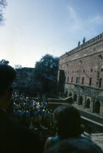 Keywords: First Lady Jacqueline Kennedy Tours Fatehpur Sikri in India (8).jpg en First Lady Jacqueline Kennedy in foreground back to camera watches divers jump into a pool of water from the top of Victory Gate at the 16th-century Mughal city of Fatehpur Sikri in Uttar Pradesh India 1962-03-15 http //www jfklibrary org/Asset-Viewer/Archives/JFKWHP-1962-03-15-H aspx Cecil Stoughton other versions PD-USGov Jacqueline Kennedy Onassis in India Fatehpur Sikri in the 1960s Uploaded with UploadWizard Buland Darwaza |