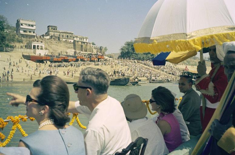 | Keywords: First Lady Jacqueline Kennedy Takes Boat Ride on Ganges River (2).jpg en First Lady Jacqueline Kennedy takes a boat ride along the Ganges River during her visit to Benares Varanasi Uttar Pradesh India L-R Princess Lee Radziwill of Poland Mrs Kennedy ™s sister; United States Ambassador to India John Kenneth Galbraith; unidentified; Mrs Kennedy; others unidentified 1962-03-16 http //www jfklibrary org/Asset-Viewer/Archives/JFKWHP-1962-03-16-C aspx Cecil Stoughton other versions PD-USGov Jacqueline Kennedy Onassis in India Uploaded with UploadWizard Ganges River in Varanasi Lee Radziwill John Kenneth Galbraith |