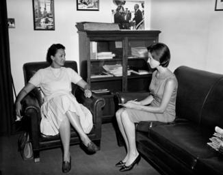 | Keywords: u.s. national archives usnationalarchives jfk presidential library jfkpresidentiallibrary blackandwhite monochrome indoor black and white Original Caption: First Lady Jacqueline Kennedy's Press Secretary Pamela Turnure with a Visitor We are looking for your help in identifying unknown people in our White House Photographs collection. If you have any information about this photograph, please post a comment, including any relevant sources, for the catalogers at the John F. Kennedy Presidential Library. Thank you! Local Identifier: JFKWHP-KN-18204 Created By: President (1961-1963 : Kennedy). Office of the Naval Aide to the President. (1961 - 1963) From: Robert Knudsen White House Photographs, 01/20/1961 - 12/19/1963 Contact: John F. Kennedy Library (LP-JFK), Columbia Point Boston, MA 02125-3398 Phone: 617-514-1600 Fax: 617-514-1652 Email: kennedy.library@nara.gov Production Dates: 6/27/1961 Scope and Content Note: This is a photograph of Pamela Turnure (on the right), Press Secretary to First Lady Jacqueline Kennedy, with an unidentified woman. East Wing, White House, Washington, D.C. Persistent URL: JFK Library URL: www.jfklibrary.org/Asset-Viewer/Archives/JFKWHP-KN-18204.... Access Restrictions: Unrestricted Use Restrictions: Unrestricted Original Caption: First Lady Jacqueline Kennedy's Press Secretary Pamela Turnure with a Visitor We are looking for your help in identifying unknown people in our White House Photographs collection. If you have any information about this photograph, please post a comment, including any relevant sources, for the catalogers at the John F. Kennedy Presidential Library. Thank you! Local Identifier: JFKWHP-KN-18204 Created By: President (1961-1963 : Kennedy). Office of the Naval Aide to the President. (1961 - 1963) From: Robert Knudsen White House Photographs, 01/20/1961 - 12/19/1963 Contact: John F. Kennedy Library (LP-JFK), Columbia Point Boston, MA 02125-3398 Phone: 617-514-1600 Fax: 617-514-1652 Email: kennedy.library@nara.gov Production Dates: 6/27/1961 Scope and Content Note: This is a photograph of Pamela Turnure (on the right), Press Secretary to First Lady Jacqueline Kennedy, with an unidentified woman. East Wing, White House, Washington, D.C. Persistent URL: JFK Library URL: www.jfklibrary.org/Asset-Viewer/Archives/JFKWHP-KN-18204.... Access Restrictions: Unrestricted Use Restrictions: Unrestricted |