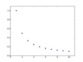 | Keywords: First members of harmonic sequence.svg en First ten members of the harmonic sequence <math>a_n \tfrac 1n</math> de Die ersten zehn Folgenglieder der harmonischen Folge <math>a_n \tfrac 1n</math> 2016-02-12 own http //kulla me Stephan Kulla User Stephan Kulla other versions <gallery> File Harmonische Folge svg </gallery> other fields Matplotlib + import numpy as np import matplotlib pyplot as plt number of shown sequence members nmax 10 ns np arange 1 nmax+0 1 1 plt plot ns 1/ns o plt xlim ns0-1 ns-1+1 plt ylim 0 1/ns max +0 1 plt axhline 0 color black plt savefig First members of harmonic sequence svg cc-zero Sequence mathematics Harmonic series |