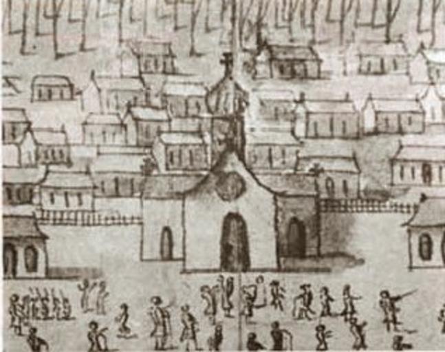 | Keywords: First Parish Church of St Louis New Orleans 1726.jpg New Orleans 1726 Sketch showing first parish Church of St Louis located where the St Louis Cathedral would later be built Detail of Veüe et Perspective de la Nouvelle Orleans View Perspective of New Orleans 1726 Ink and watercolor by Jean-Pierre Lassus Ink watercolor view by Jean-Pierre Lassus from the collection of the Centre des archives d'outre-mer France DFC Louisiane 71-6A via http //www storyvilledistrictnola com/stlouis_cathedral html 1726 Jean-Pierre Lassus PD-old-100 Saint Louis Parish Church New Orleans Veüe et Perspective de la Nouvelle Orleans 1726 Jackson Square New Orleans |