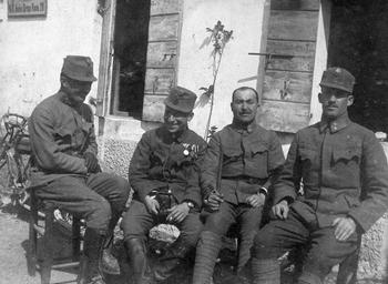 | Keywords: First World War, tableau, uniform, men, barrack, camera, fun, yard, medal, motorcycle Fortepan 12628.jpg Check categories 2016 June 12 Tags First World War tableau uniform men barrack camera fun yard medal motorcycle http //www fortepan hu/_photo/download/fortepan_19614 jpg 1918 Fortepan 12628 http //www fortepan hu/_photo/download/fortepan_19614 jpg http //www fortepan hu/ lang en img 12628 Unknown The release at fortepan hu is CC-BY-SA-3 0 As the photographer is unknown or pseudonymous and the photograph is Age 1918 01 01 years old it is considered public domain both in the country of publication Hungary and the USA where Wikimedia Commons is hosted See Fortepan HU for more information on related uploads PD-anon-70-EU PD-1923 DEFAULTSORT Fortepan 012628 1918 photographs Images uploaded by Fæ |