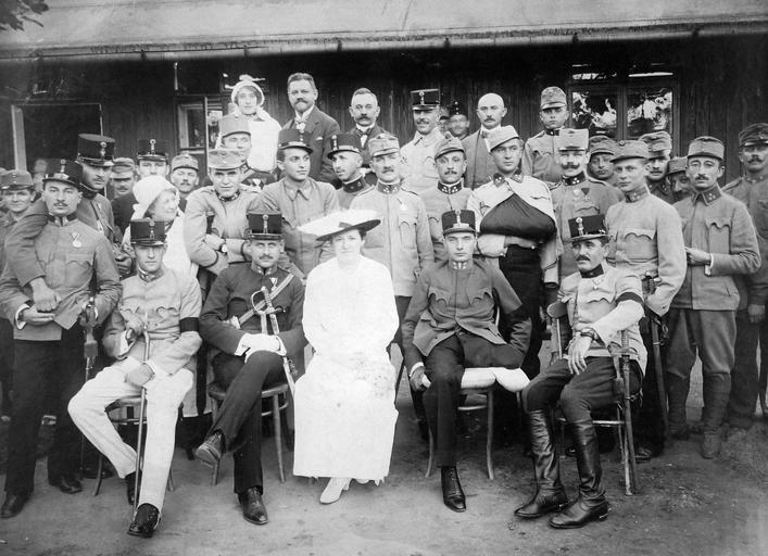 | Keywords: First World War, tableau, uniform, men, women, sword, gesture, wounded, disabled, medal Fortepan 14087.jpg Check categories 2016 June 14 Tags First World War tableau uniform men women sword gesture wounded disabled medal http //www fortepan hu/_photo/download/fortepan_22876 jpg 1918 Fortepan 14087 http //www fortepan hu/_photo/download/fortepan_22876 jpg http //www fortepan hu/ lang en img 14087 Unknown The release at fortepan hu is CC-BY-SA-3 0 As the photographer is unknown or pseudonymous and the photograph is Age 1918 01 01 years old it is considered public domain both in the country of publication Hungary and the USA where Wikimedia Commons is hosted See Fortepan HU for more information on related uploads PD-anon-70-EU PD-1923 DEFAULTSORT Fortepan 014087 1918 photographs Images uploaded by Fæ |