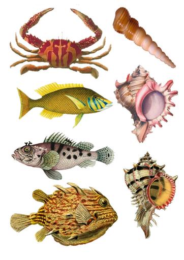 Keywords: fish collage vintage ocean life crab sea shell beach coast yellow marine nature fin old nautical educational water maritime collection fishing pink atlantic education beaches pet animal tropical