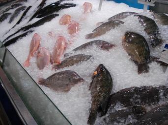 Keywords: Fish food Udonthani WD2.JPG en fish packed in ice supermarket Tesco-Lotus Udonthani Thailand Own Wolf-Dieter 2008-07-14 11 26 44 MESZ see also Fish food Udonthani WD1 JPG Fish in Thai cuisine Fish markets in Thailand Oreochromis niloticus