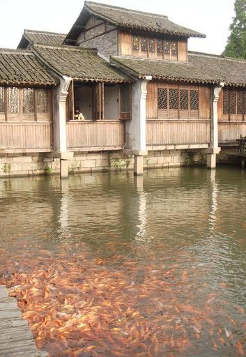Keywords: Fish in Wuzhen.JPG zh 乌镇的鱼 乌镇位于浙江 桐乡市,是江南著名古镇之 own 韩笃 2009 Carassius auratus Wuzhen Xizha