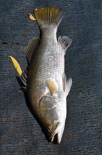 Keywords: fish sea life baramundi ocean marine animal marine life scales large silver tropical fins fishing fishes sea