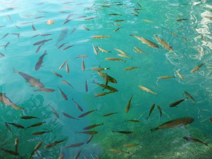 Keywords: fish swarm fish plitvice lakes nature lake croatia national park clear water
