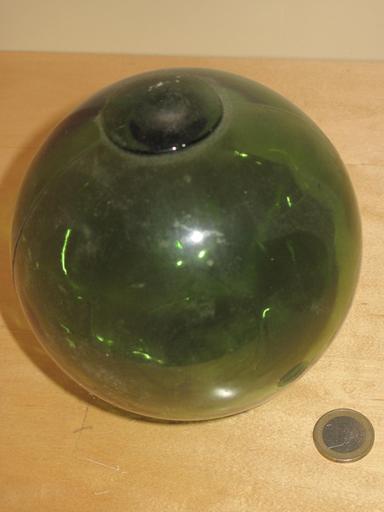 Keywords: Fishing ball.jpg en Fishing glass ball Diameter 12 cm They were used to keep the fishing nets floating until 1960's Found on a beach of Landes France They have been replaced by ball in zinc or plastic fr Boule de pêche en verre Diameter 12 cm Elles servaient à faire flotter les filets des chalutiers jusque dans les années 1960 Trouvée sur une plage des Landes Elles ont été remplacées par des boules en zinc ou en plastique own Tangopaso ~ 1960 Fishing balls |
