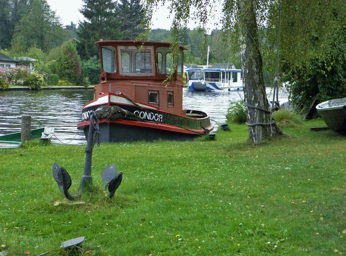 Keywords: fishing boat old ship berth water river spree berlin anchor bank