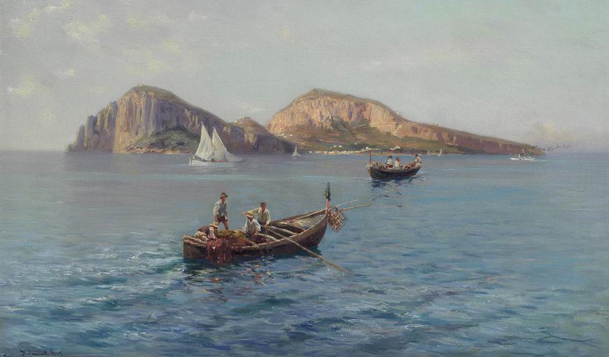 Keywords: Fishing off the coast of Capri, by Bernardo Hay.jpg en Fishing off the coast of Capri oil on canvas 31 5 x 53 5cm signed b l Bernard Hay < 1935 http //www bonhams com/auctions/23540/lot/9/ Bonhams Creator Bernardo Hay other versions Custom license marker 2016 10 28 PD-old-70 Bernardo Hay |