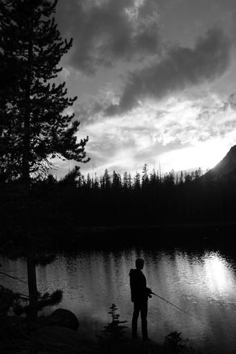 Keywords: fishing outdoors wilderness black and white nature lake rod activity fish fisherman leisure person male recreation sky one adult fishing rod vacation angling holding relaxation water summer catch