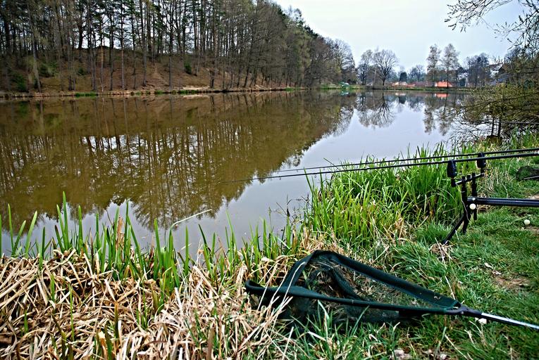 Keywords: fishing pond reflection surface edge of the pond ledenice south bohemia water-level nature under marakech cloudy keser rods reeds carp