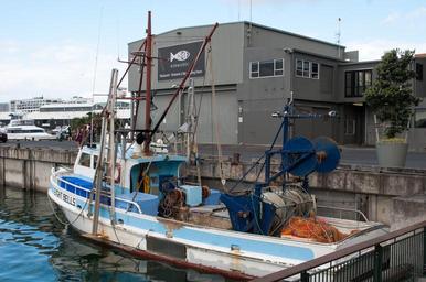 | Keywords: auckland new zealand newzealand outdoor vehicle boat Fishing vessel "Eight Bells" docked in Viaduct Harbour in front of Kermadec, a seafood restaurant. Fishing vessel "Eight Bells" docked in Viaduct Harbour in front of Kermadec, a seafood restaurant.  |