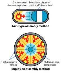 | Keywords: Fission bomb assembly methods.svg Assessments 1 Image Fission bomb assembly methods svg Schematic representation of the two methods with which to assemble a fission bomb see nuclear weapon design Own 2006-01-19 Fastfission Fastfission Fission bomb assembly methods de svg Fission bomb assembly methods zh-hans svg ;Other languages עברית · Русский · Tiếng Việt Cross sections of nuclear weapons Featured diagrams | ||||