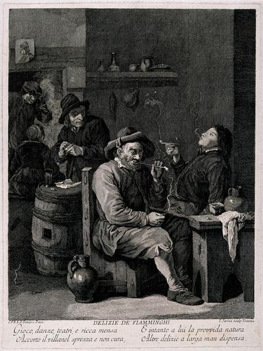Keywords: Five Flemish men, old and young alike, smoke and drink in a Wellcome V0019042.jpg object history exhibition history credit line Wellcome Images http //wellcomeimages org/indexplus/obf_images/31/a2/6db8fe32724b81a3263f49139b5e jpg Gallery http //wellcomeimages org/indexplus/image/V0019042 html accession number PD-old-auto-1923 1799 Images uploaded by Fæ Wellcome V0019042 jpg Files from Wellcome Images check needed V0019042 jpg Works after David Teniers the Younger Thomas Major |