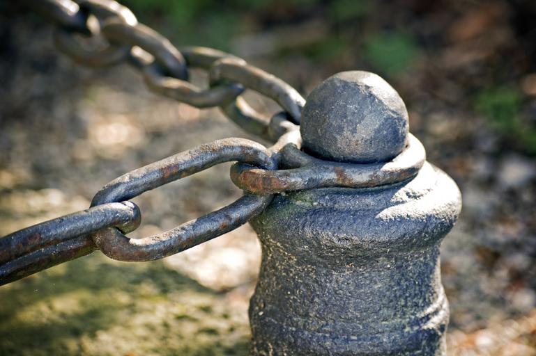 Keywords: fixing post chain stainless metal iron links of the chain weathered old corrosion connected keep together connection rusty massive rusted members metal chain chain link force iron chain cohesion