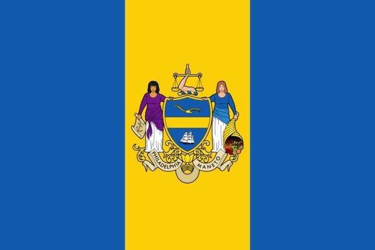 | Keywords: Flag of Philadelphia, Pennsylvania.svg en Flag of Philadelphia Pennsylvania adopted in 1895 Image created by uploader based on various images found on the web as well as the blazon found at the Philadelphia city web site Own Dyfsunctional 2008-10-30 PD-old PD-US DEFAULTSORT Philadelphia Flags with three vertical stripes one yellow two blue Cornucopia in heraldry Flags of Pennsylvania Flags with people Flags with banners Inscribed flags names Standing women in art SVG flags with an aspect ratio of 3 2 SVG flags of cities of the United States |